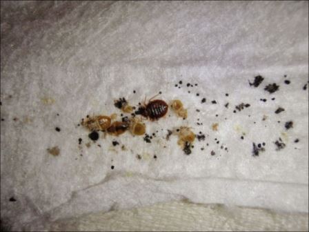Как же выглядят следы жизнедеятельности клопов? Ну, во-первых, это экскременты. Как любым живым существам, клопам свойственен такой процесс, и их экскременты похожи на маковое зёрнышко. В основном, их можно обнаружить утром на кровати.