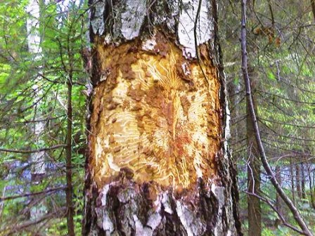 • Деревья окружает большое число птиц, а именно дятлов. Ни для кого не секрет, что дятлы, почуяв в дереве насекомое, начинают клевать ствол, образуя в нем многочисленные отверстия. Если в дереве есть короед, то на него будут слетаться дятлы, которые всеми силами будут пытаться уничтожить насекомое.